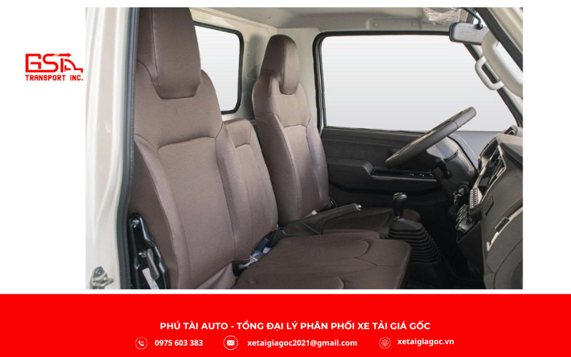 Về nội thất, xe tải Đô Thành IZ45S thùng kín mang đến không gian cabin rộng rãi, thoải mái và đầy đủ tiện nghi cho người lái. Ghế ngồi bọc nỉ hoặc simili cao cấp, điều hòa hai chiều mát lạnh, cùng hệ thống giải trí hỗ trợ FM, USB, MP3 giúp hành trình thêm dễ chịu.