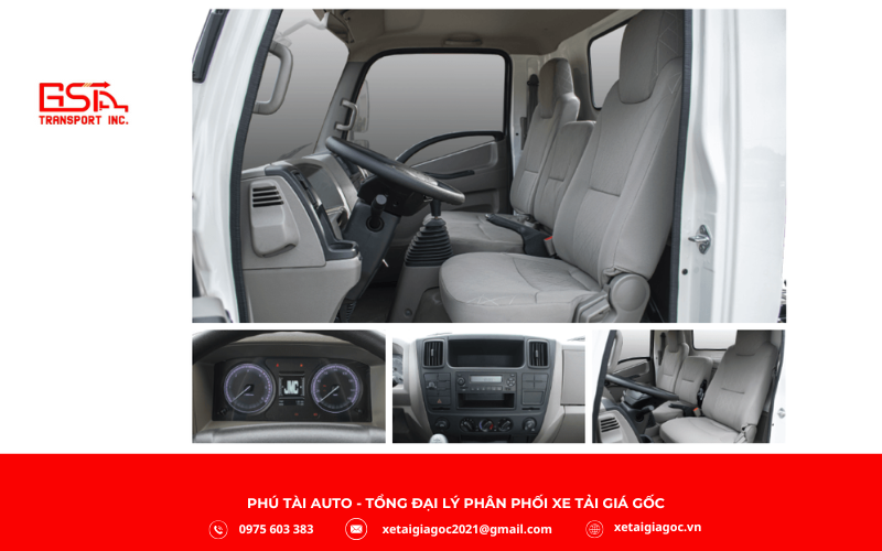 Bên trong, nội thất lấy người lái làm trung tâm, với ghế bọc da cao cấp, vô lăng trợ lực gật gù, và taplo bố trí khoa học, mang đến sự thoải mái, tiện nghi và sang trọng vượt trội trong phân khúc xe tải nhẹ.