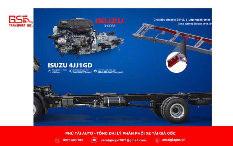 | Động cơ | Diesel JX493ZLQ5 nhập khẩu, công nghệ ISUZU Nhật Bản |