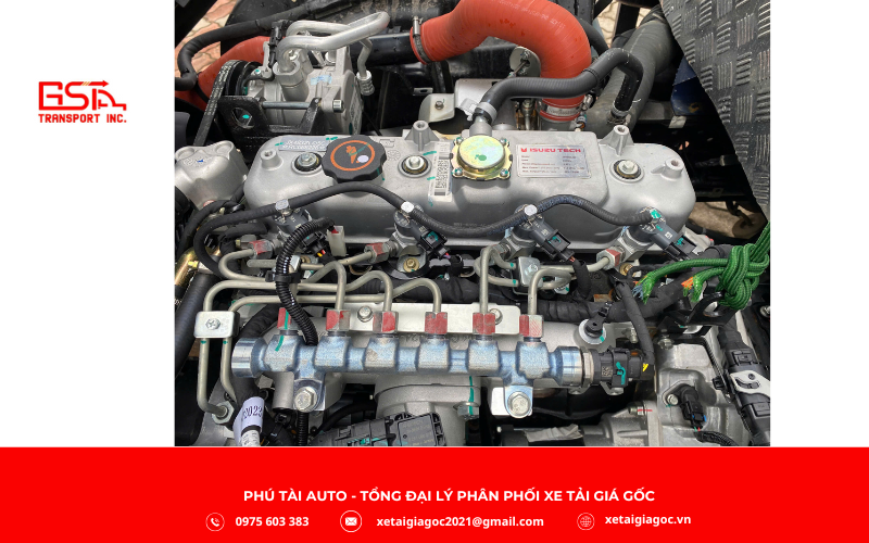 Khối động cơ dung tích 2.771cc, sản sinh 122 mã lực tại 3.200 vòng/phút và mô-men xoắn 330Nm ở dải tua thấp, giúp xe vận hành mạnh mẽ và ổn định ngay cả khi chở tải nặng. Kết hợp với hộp số cơ khí 5 tiến, 1 lùi cùng hệ thống phanh ABS, phanh khí xả, xe đảm bảo an toàn và kiểm soát tốt khi di chuyển.