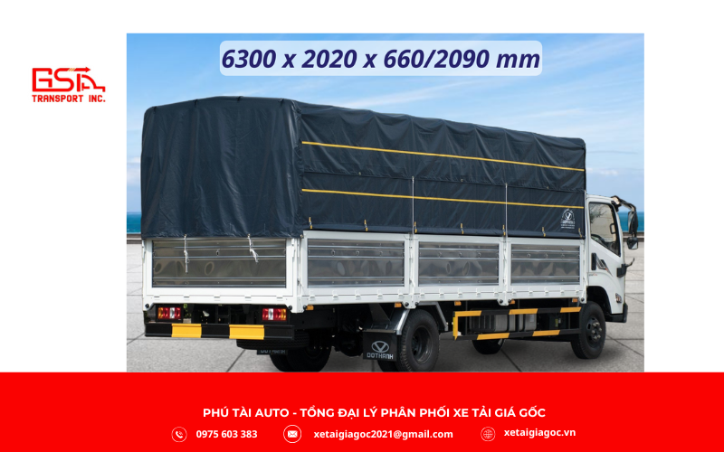 - Thùng mui bạt 6.3m siêu rộng, chứa được nhiều hàng, lý tưởng cho vận tải đường dài.