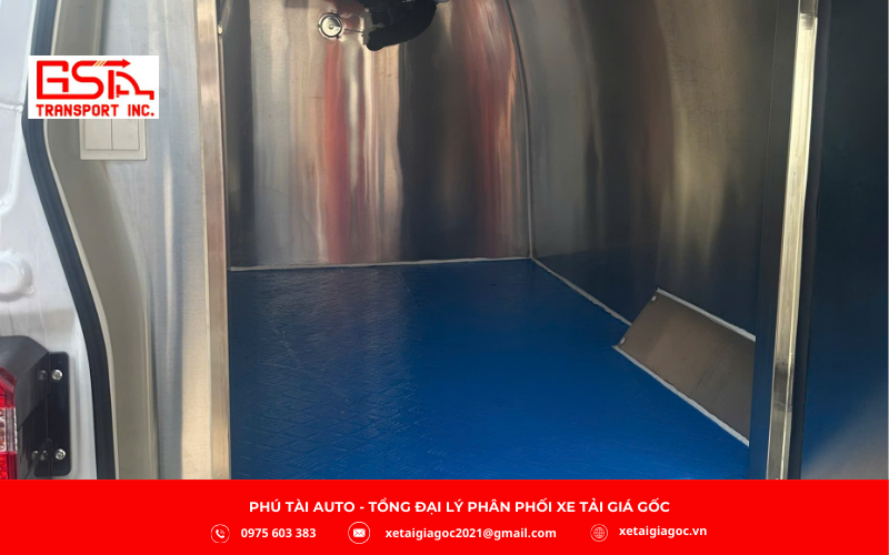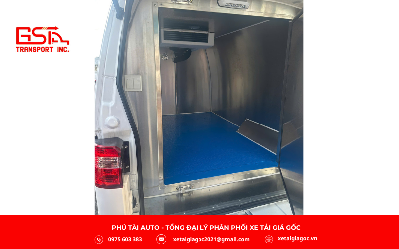 Khoang thùng rộng 4,2 m³ (2.225 x 1.480 x 1.280 mm), hỗ trợ nhiệt độ 3–8°C hoặc -18 đến -28°C. Cabin 2 chỗ được trang bị ghế da, điều hòa, màn hình Android, camera lùi và phanh ABS, đáp ứng tốt nhu cầu vận chuyển hàng ngày.